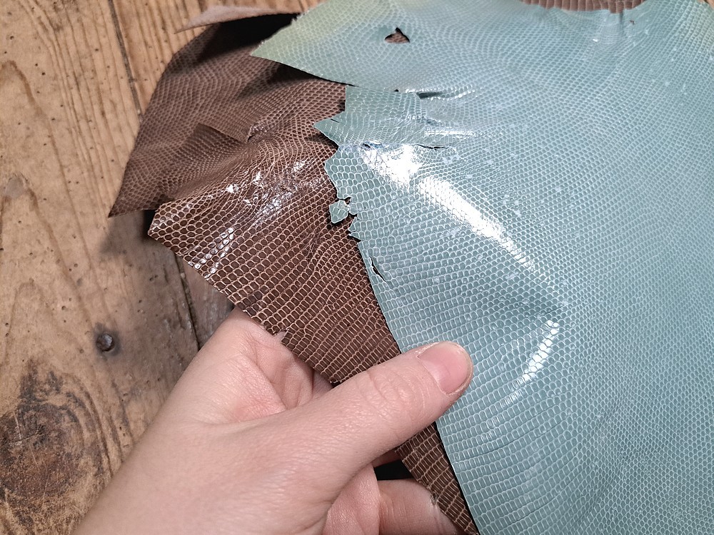 Lot de 2 peaux de cuir de lézard - D - Bleu/Taupe