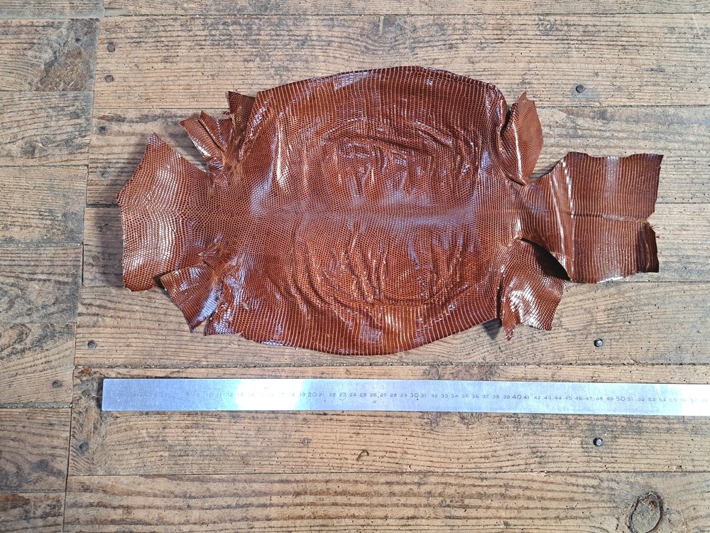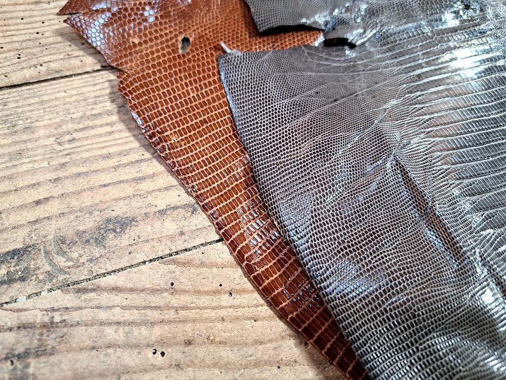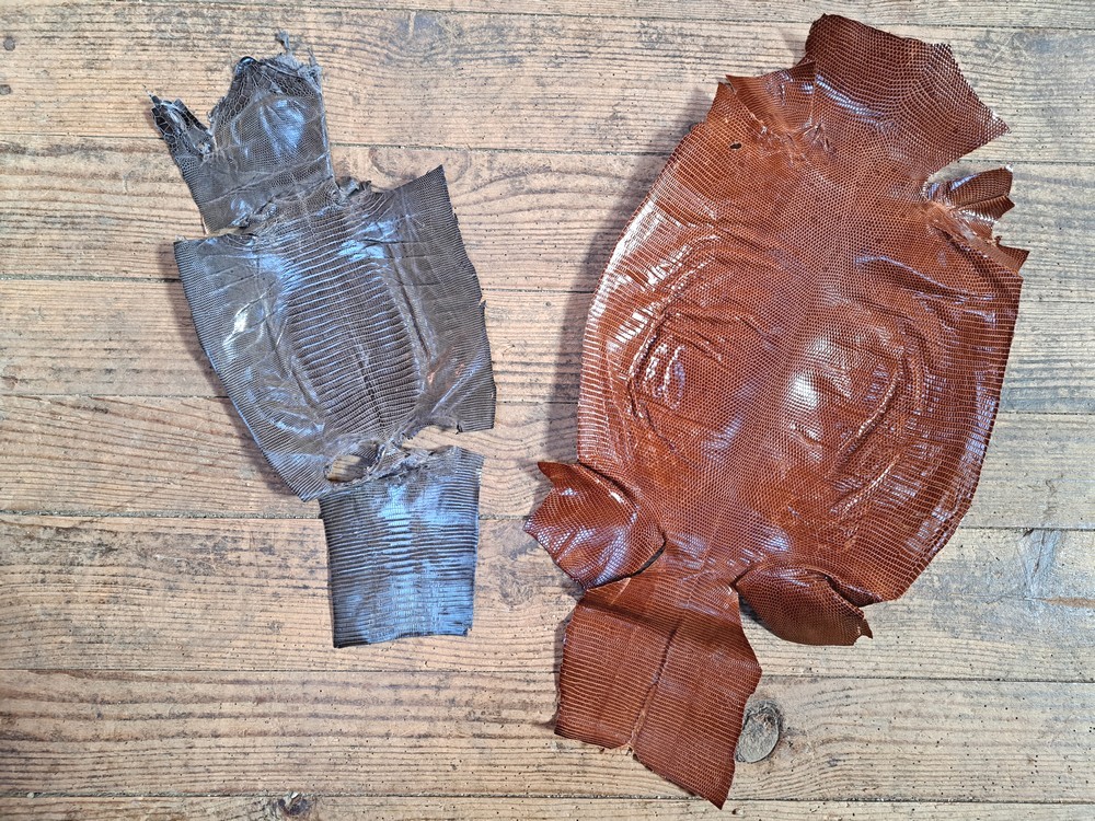 Lot de 2 peaux de cuir de lézard - A - Camel/Gris