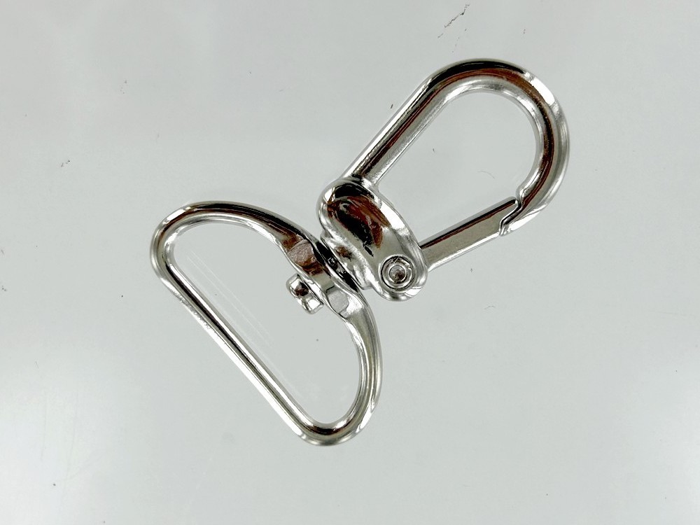 Robuste et élégant, le mousqueton pivotant en arc 25 mm est un indispensable pour vos créations de maroquinerie. Fabriqué en métal plaqué nickel, il assure solidité et durabilité tout en offrant une finition brillante et moderne. Sa bélière rotative permet une rotation fluide, idéale pour éviter que vos lanières ou sangles ne s’entortillent.
