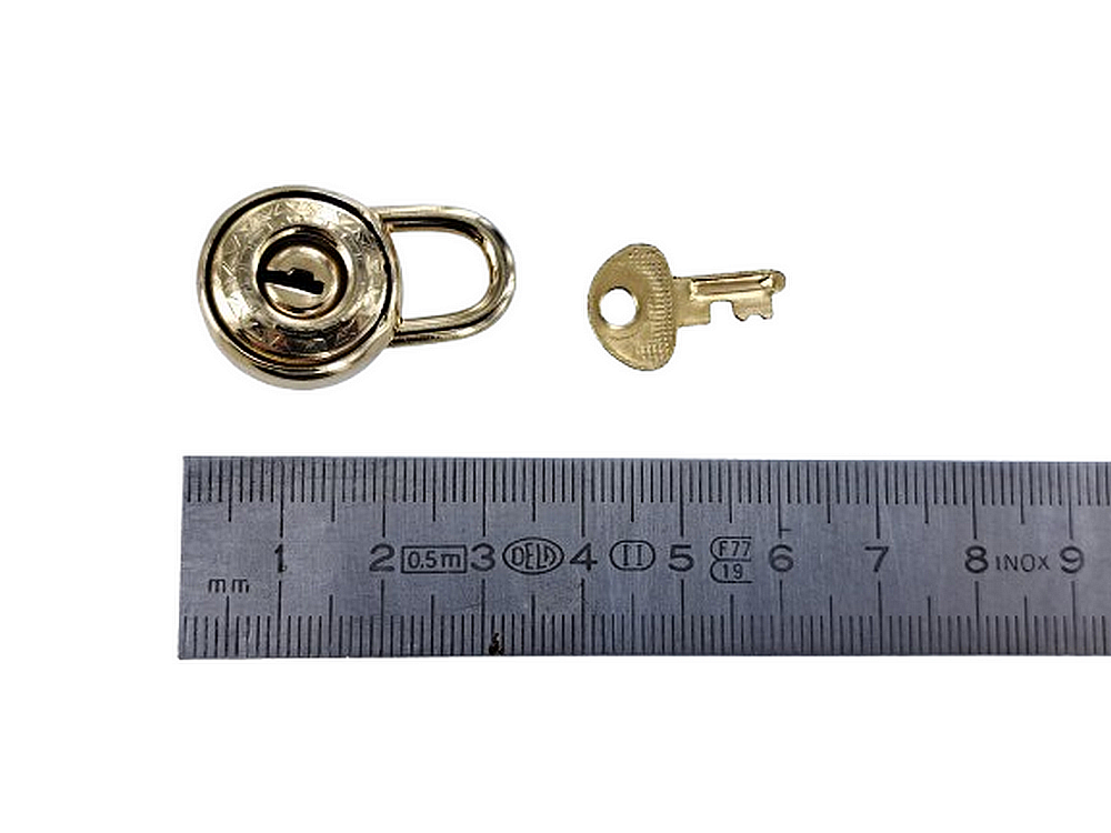 Fermoir cadenas rond avec sa clé - 3.2 cm x 2 cm - Doré clair