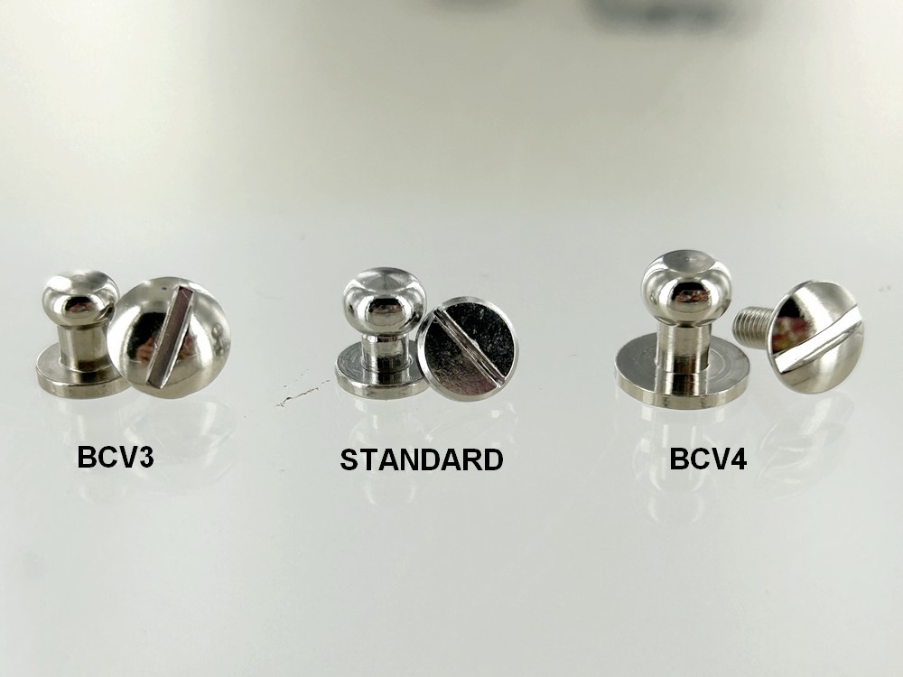 Cuir en Stock vous propose toute une gamme de boutons de col à vis , appelé aussi boutons de cartouchière. Il s'agit d'accessoires de qualité professionnelle, fabriqués en laiton (matériel très reconnu en maroquinerie et qui ne rouille pas) disponible dans différentes tailles (BCV3 / BCV4) et finitions ( laiton ou nickelé). Les boutons de col à visser sont très simple à monter sur vos créations, Cuir en Stock vous conseille de percer un trou de 3 mm dans votre cuir, enfilez la partie mâle sur l'envers du cuir (la partie avec la tête de vis) puis vissez par dessus le cuir la partie femelle (la partie bouton), vous pouvez bien serrer les deux parties avec un simple tournevis plat pour bien emprisonner le cuir et que le bouton de col ne se dévisse pas. Pour la partie de cuir qui se rabat, le diamètre du trou va varier en fonction de la taille de vos boutons de col (BCV3 = 4.5mm / BCV4 = 5.5mm) nous vous conseillons de percer un petit trou plus petit que le diamètre du bouton puis de faire une toute petite encoche dans ce trou pour faciliter et sécuriser la fermeture de votre création.