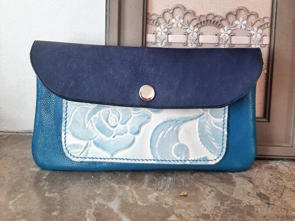 Conçue avec la Peau de cuir de mouton tannage végétal fleurie – Bleu jeans (Réf. bg-6234).