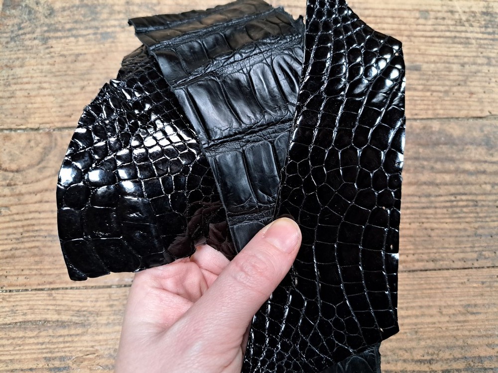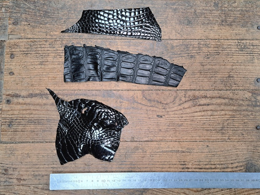 Lot de 3 morceaux de cuir de crocodile - Noir
