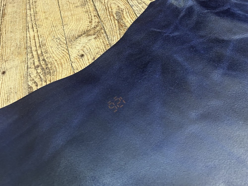 Croûte de cuir de vache tannage végétal cirée – BLEU