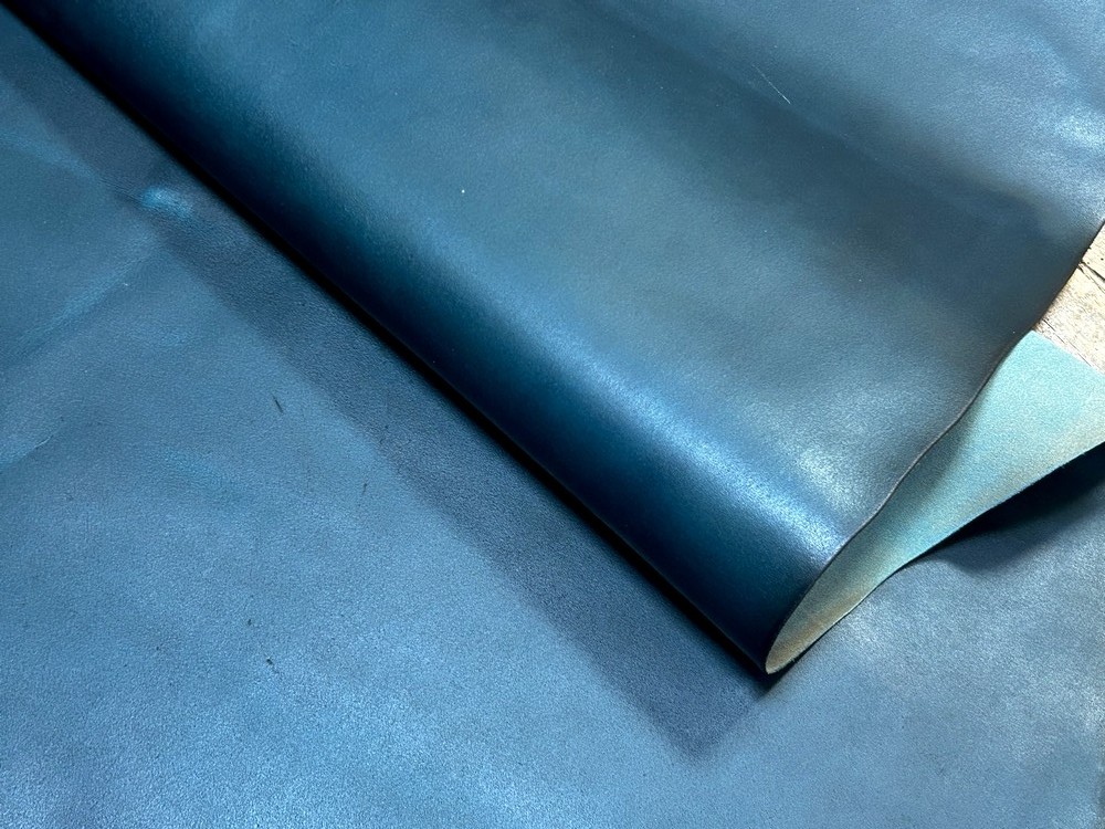 Croûte de cuir de vache tannage végétal cirée – BLEU PÉTROLE