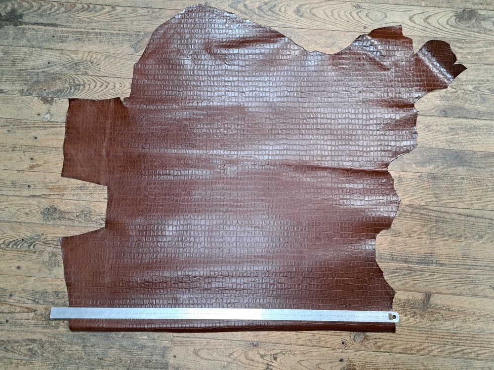 Demi-peau de cuir de vachette grain croco brun acajou - A