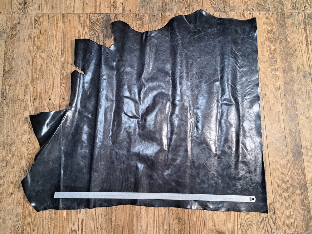Demi-peau de cuir de vachette ciré pullup - Tannage végétal - Bleu marine -B-