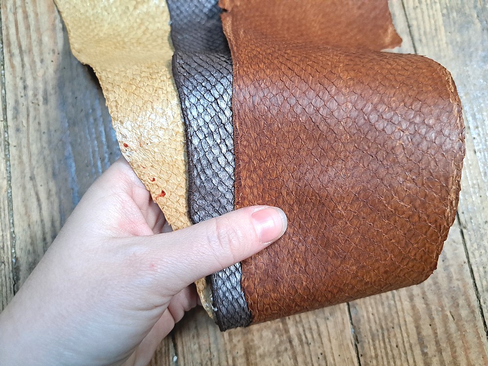 🐟 Lot de 3 peaux de cuir de saumon – Naturel, résistant & unique