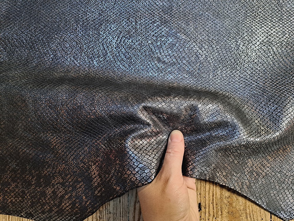 Chèvre métallisée effet grains serpent - Noir/Argent