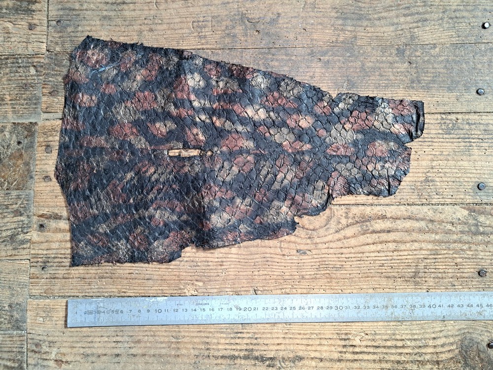 Le cuir de tilapia est un cuir exotique issu de la peau du poisson tilapia, transformée par un procédé de tannage spécifique. Il se distingue par son motif naturel d’écailles, sa souplesse et sa grande résistance.