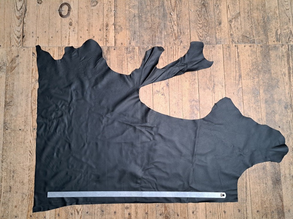 Demi-peau de cuir de vache grainé - Noir mat - B
