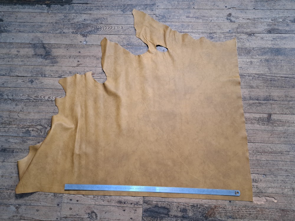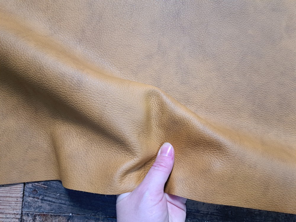 Demi-peau de cuir de vachette grainée nuancé - Moutarde - B