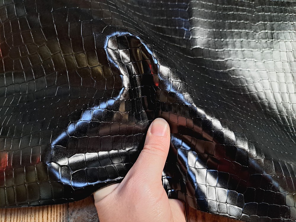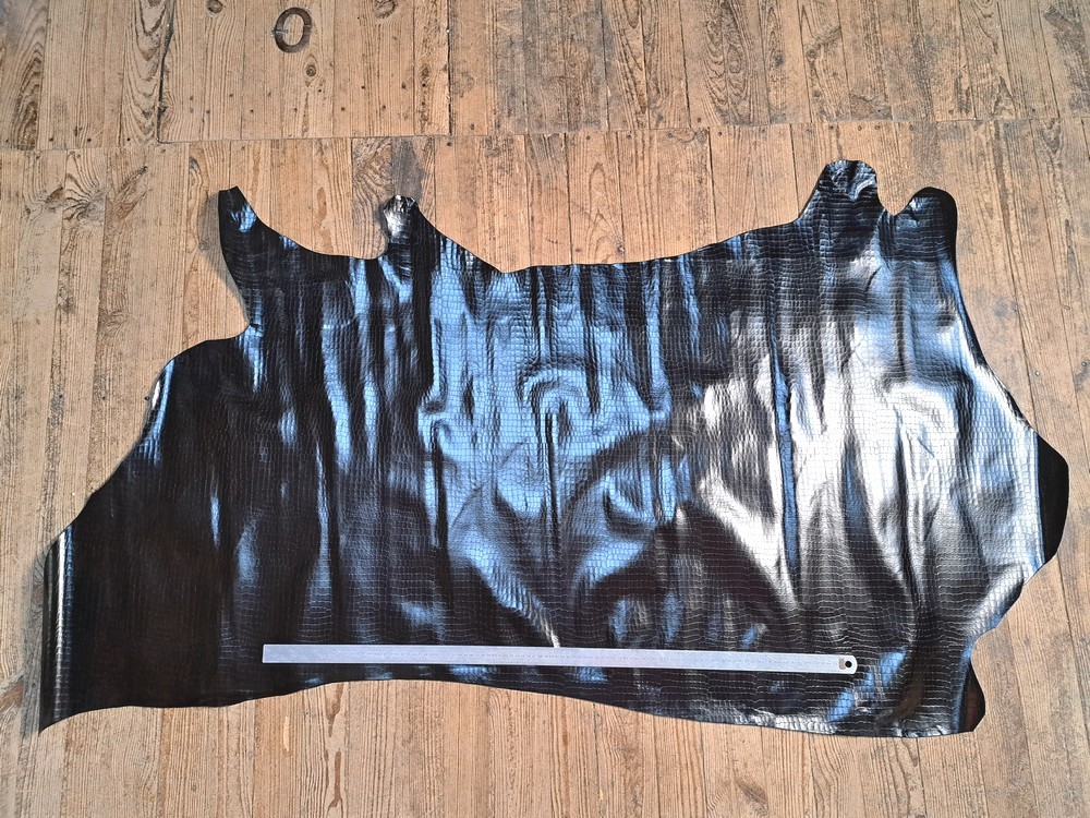 Demi-peau de cuir de veau effet crocodile vernis - Noir
