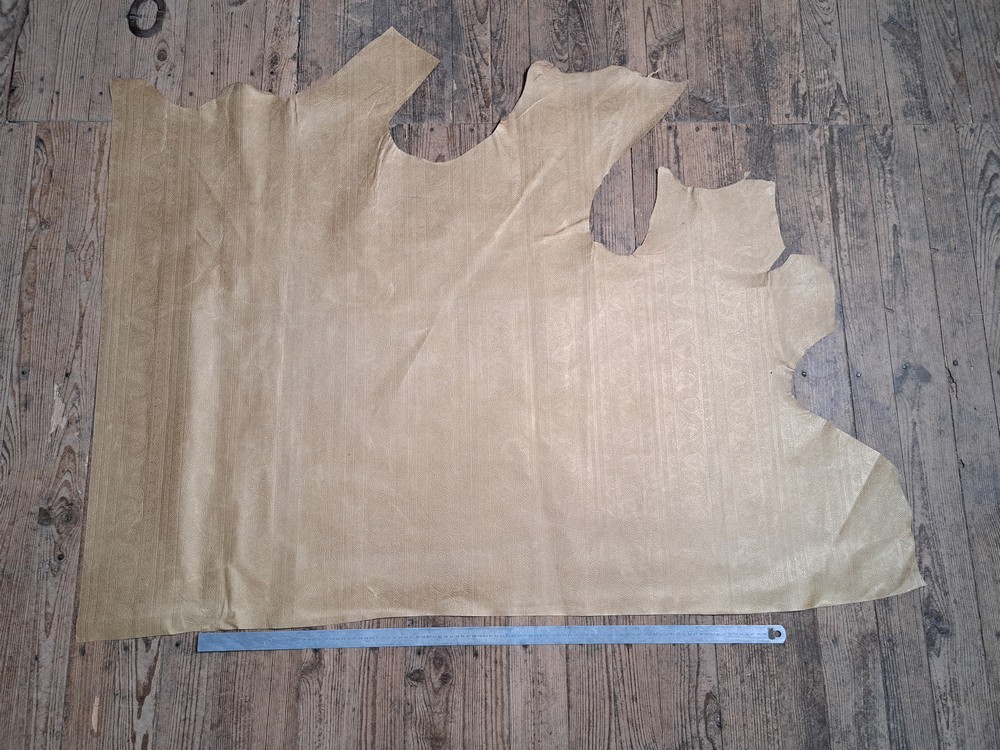 Demi peau de cuir de veau motif grecque - Or blanc - B