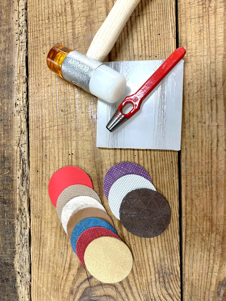 Pour rendre cette idée encore plus unique, utilisez un Lot surprise de ronds 6 cm en cuir tannage végétal : vous pourrez les personnaliser avec un prénom, une date ou un petit mot grâce à notre Jeu de matoirs alphabet.