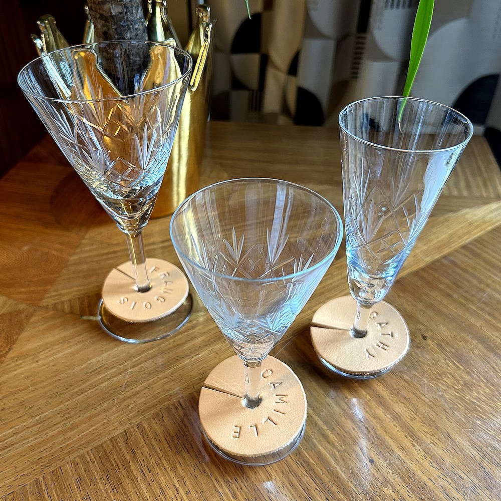 À l’occasion de la sortie du vin nouveau, on vous propose une idée créative aussi simple qu’élégante : fabriquer vos propres marques-verres en cuir. Une petite touche déco, un brin raffinée, qui permet à chacun de retrouver son verre en un clin d’œil… tout en ajoutant la chaleur et l’authenticité du cuir sur votre table.