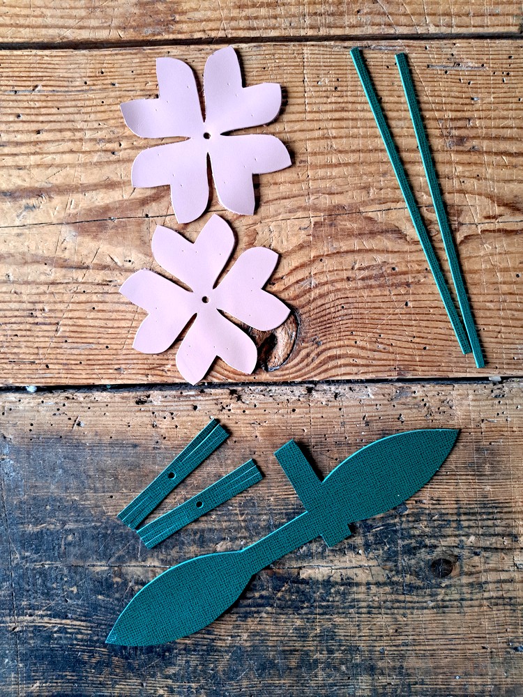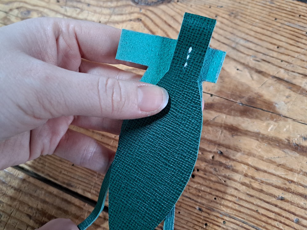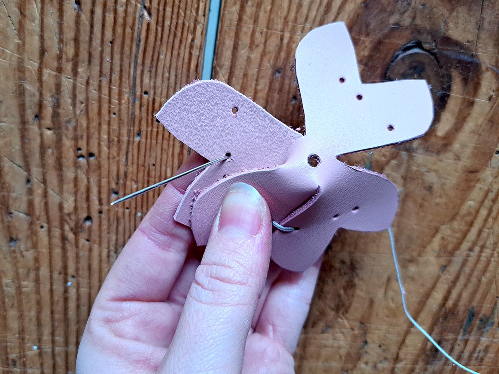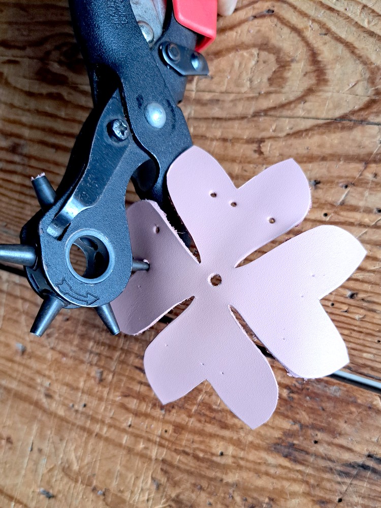 Percez également les feuilles en suivant exactement les points indiqués sur le patron. Pour cette étape, vous pouvez utiliser une griffe à frapper, une pince perforatrice ou une alêne.