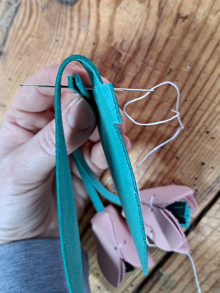 Pour une finition soignée, repliez et cousez la petite languette sur le côté. Il ne vous reste plus qu’à glisser un mousqueton ou un anneau, afin de pouvoir accrocher votre bouquet de tulipes à votre sac ou à vos clés !