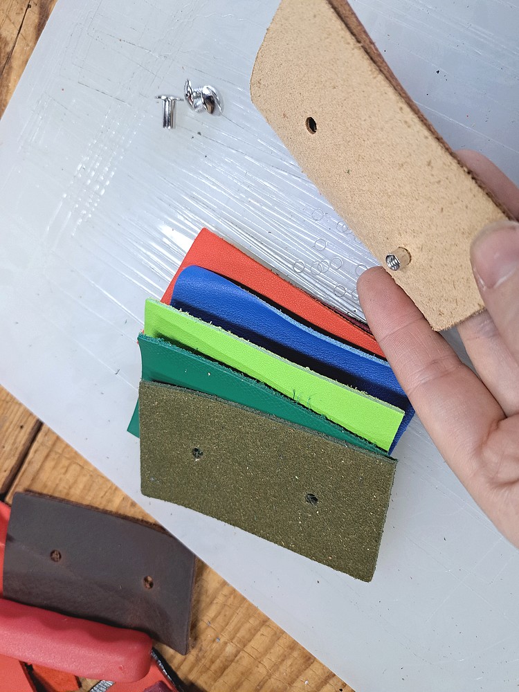 ✨ Astuce : placez toujours le côté fleur (la face la plus belle du cuir) vers l’extérieur pour le premier et le dernier morceau — cela donnera à votre bloc une belle finition.