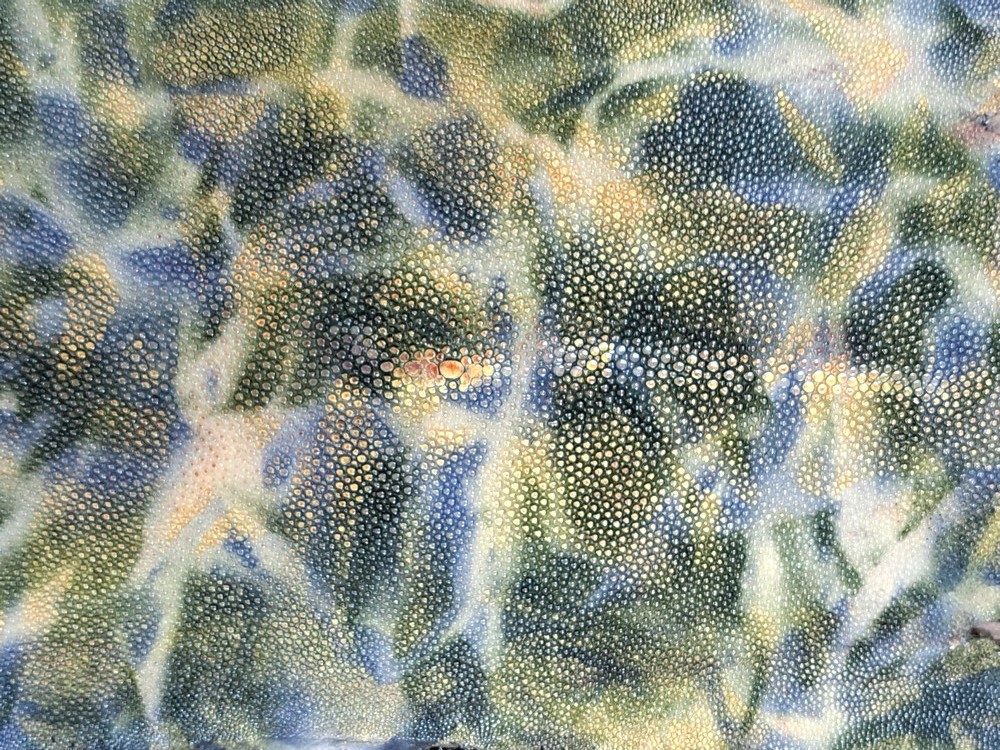 Le galuchat est un cuir exotique d'exception grâce a son grain et ses perles blanches centrales uniques, appelées aussi couronne