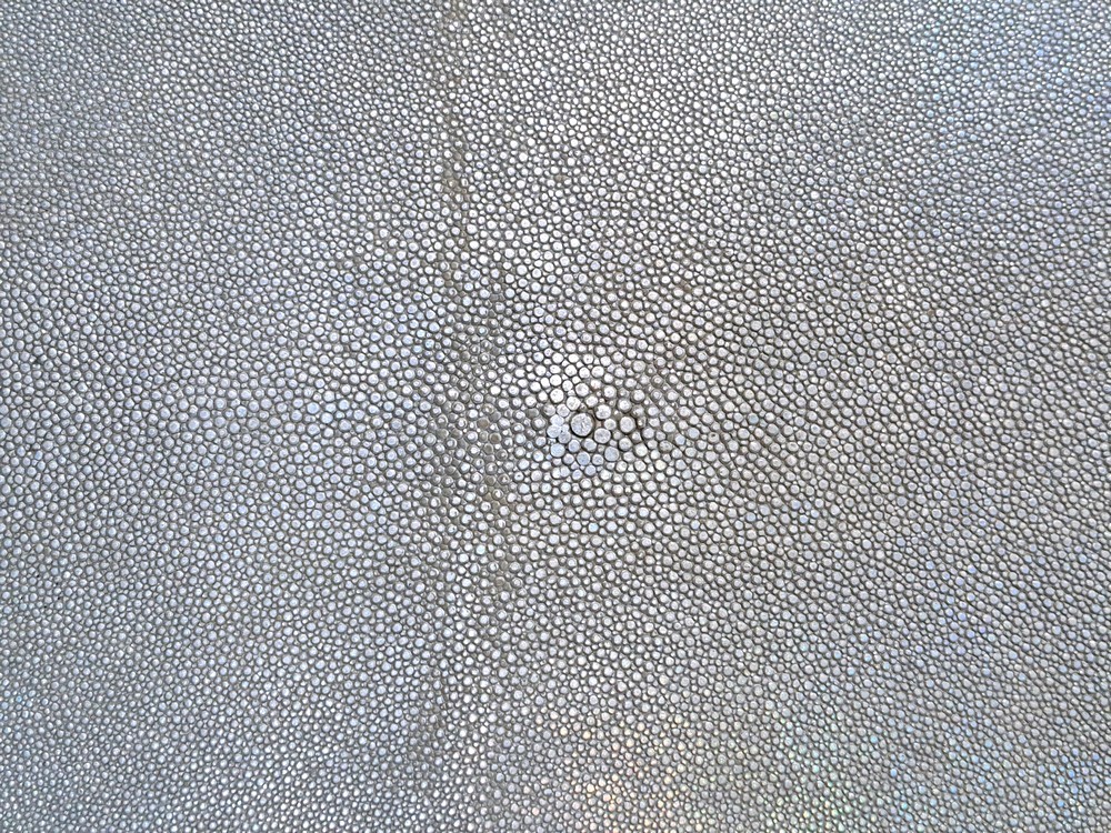 Le galuchat est un cuir exotique d'exception grâce a son grain et ses perles blanches centrales uniques, appelées aussi couronne