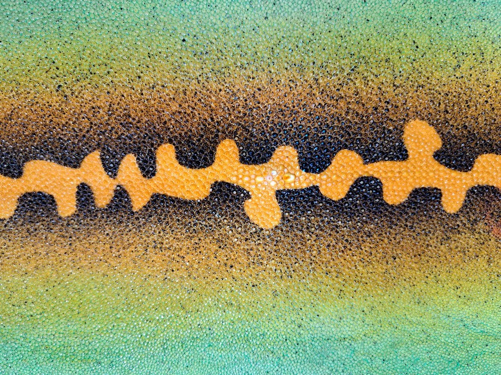 Le galuchat est un cuir exotique d'exception grâce a son grain et ses perles blanches centrales uniques, appelées aussi couronne
