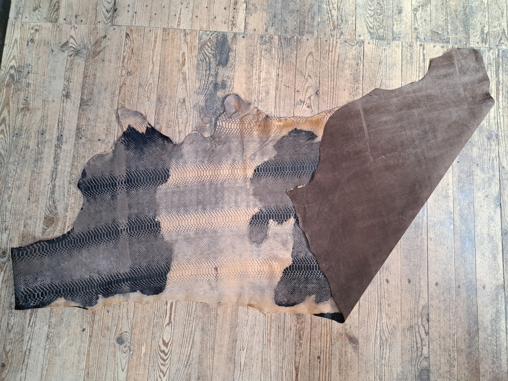 Demi-peau de vache poil tachetée effet serpent - Brun clair/Marron