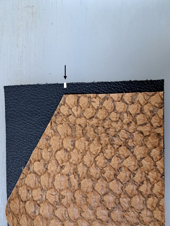 Avant collage, marquez un point de repère sur le cuir principal :