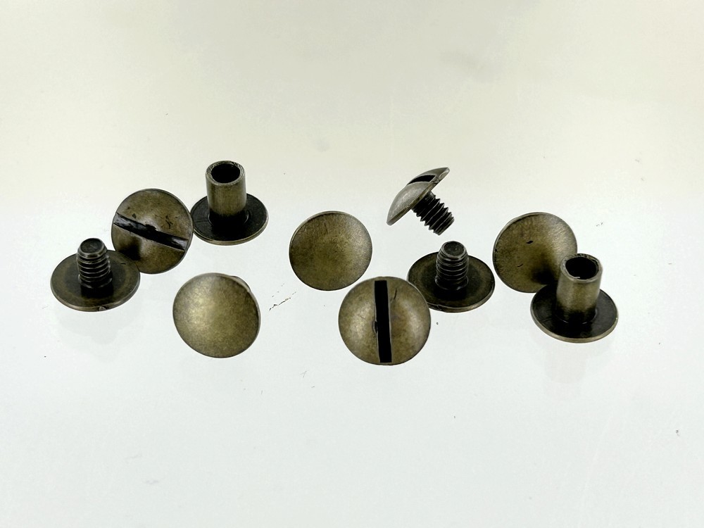 Optez pour ce lot de 5 vis Chicago bombé finition bronze, idéales pour fixer solidement vos créations en cuir.